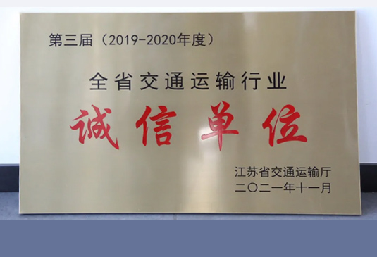 2021年获第三届(2019-2020年度)江苏省交通运输行业“诚信单位”称号