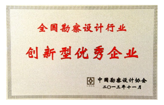 2013年被中国勘察设计协会评为 “中国勘察设计行业创新型优秀企业”
