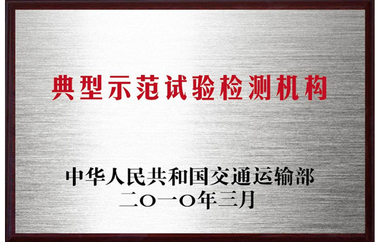 2010年被交通运输部授予“典型示范试验检测机构”称号(全国两家之一)