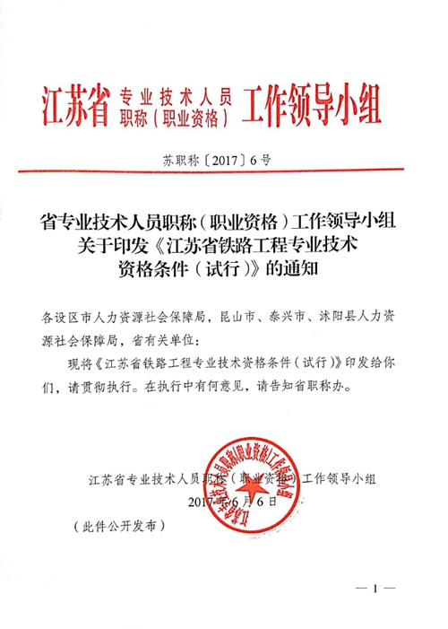 1st Provincial Railway Engineering Professional Talent Evaluation Criteria—Railway Engineering Professional Technical Qualifications of Jiangsu Province Released
