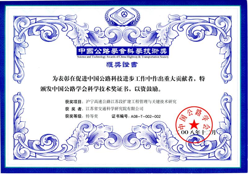 沪宁高速公路江苏段扩建工程管理与关键技术研究特等奖