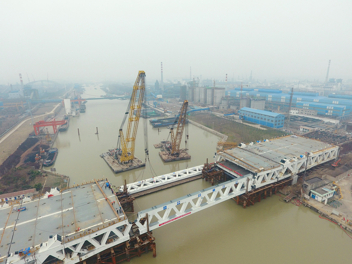 fun88|西安路京杭运河大桥主桁梁架设顺利完成