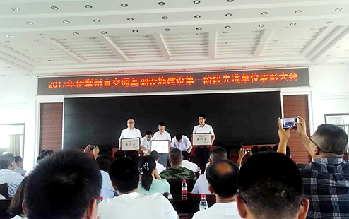 日前,伊犁州交通基础设施建设2017年第一阶段先进单位表彰大会在伊犁州交通运输局召开。江苏苏科建设项目管理有限公司伊宁县农村公路代建指挥部(以下简称“苏科建设伊宁县农路代建指挥部”)荣膺“代建管理单位第一名”奖项。 参与此次评选的有各县(市)交通运输局、农村公路代建指挥部及施工企业、PPP项目指挥部、项目部、总监办、州直旅游路、资源路、特...