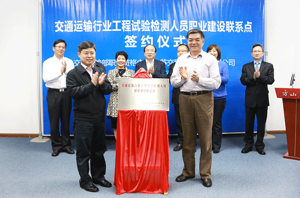 本报讯 4月26日,交通运输部职业资格中心与fun88集团在宁举行交通运输行业工程试验检测人员职业建设联系点签约仪式,该联系点在试验检测领域为全国首家。省交通运输厅党组书记刘广忠、部职业资格中心副主任朱传生为联系点揭牌并讲话。省交通运输厅巡视员王昌保出席仪式。 fun88集团自2009年起连续6年被部安全与质量监督管理局评为公路水运工程甲级(专项...