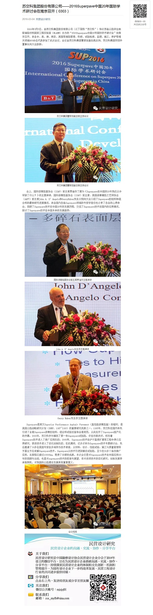 【媒体报道】fun88——2016Superpave中国20年国际学术研讨会在南京召开(民营设计研究微信于2016年3月4日刊出)