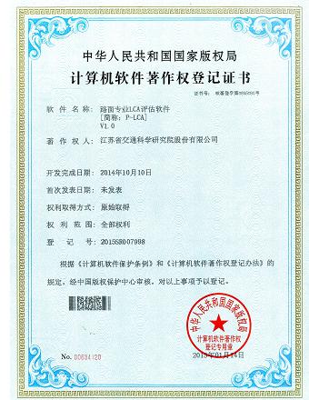 “路面专业LCA评估软件” 获软件著作授权