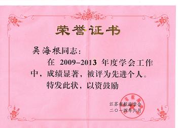 近日,我公司水运工程设计研究所吴海根所长在江苏省航海学会第五次会员代表大会暨五届一次理事会议上被授予“2009—2013年度学会工作先进个人”称号。  吴海根所长作为我公司水运业务的技术带头人。在其领导下,我公司水运工程设计研究所近年来科研和业务能力得到了显著提升。已完成了包含省级科技研究计划项目在内的港口、航道规划研究项目30多项,沿海沿江及...