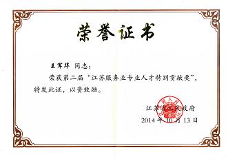 我公司王军华总裁荣获第二届“江苏服务业专业人才特别贡献奖”