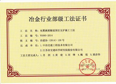 fun88 “双翼挑梁隧道围岩支护施工工法”获省部级工法