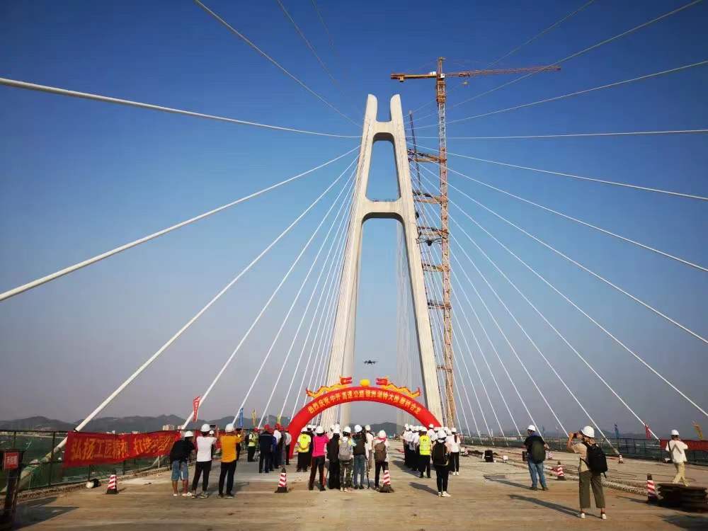 “巨龙”飞渡丨集团承担设计的中开高速银洲湖特大桥成功合龙