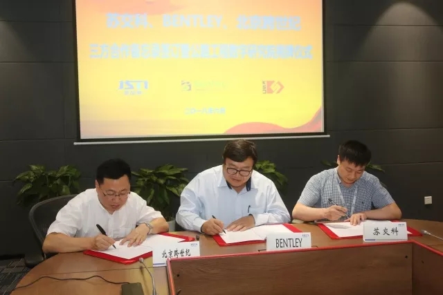 近日,fun88、BENTLEY软件有限公司(以下简称“BENTLEY公司”)、北京跨世纪软件技术有限公司(以下简称“北京跨世纪”)在南京市共同签订战略合作并挂牌成立“公路工程数字研究院”。