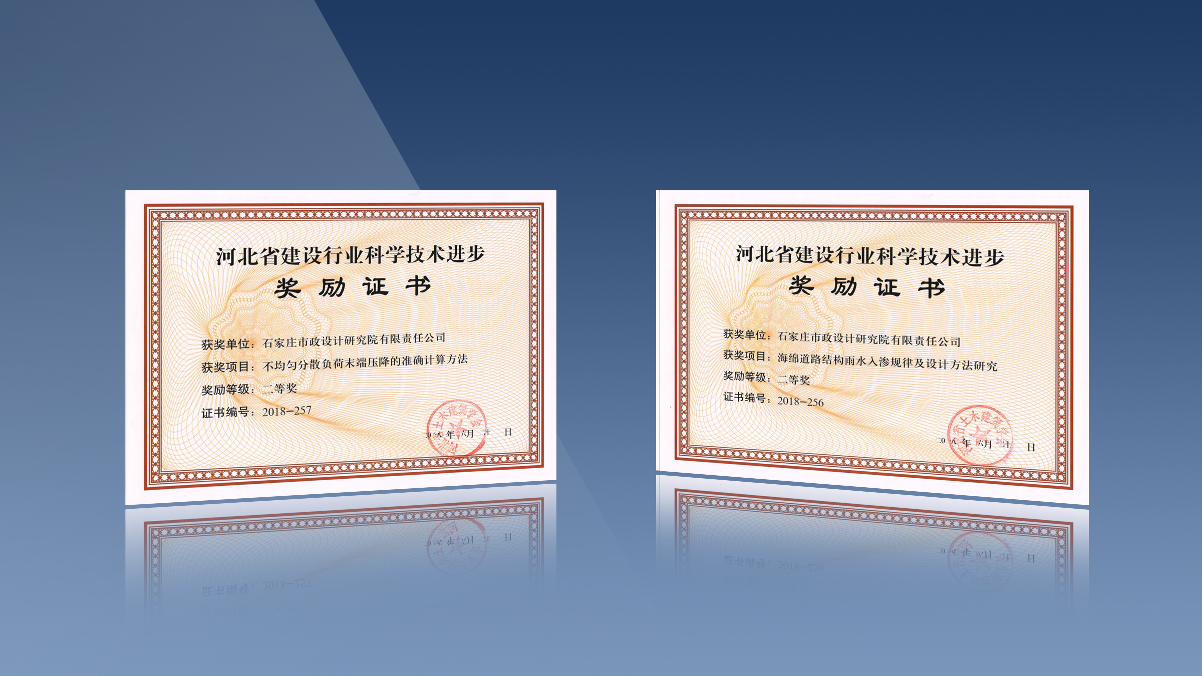 近日,fun88集团石家庄市政设计研究院的两项科研成果《海绵道路结构雨水入渗规律及设计方法研究》及《不均匀分散负荷末端压降的准确计算方法》荣获2018年度河北省建设行业科学技术进步二等奖。
