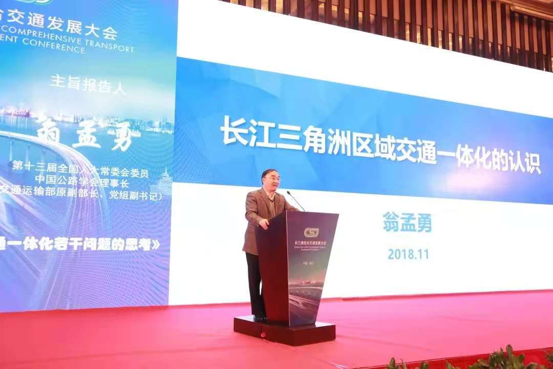 11月24日,在长三角区域合作办公室指导下,由江苏省交通运输厅、江苏省综合交通运输学会联合主办的长三角综合交通发展大会在南京召开。第十三届全国人大常委、中国公路学会理事长翁孟勇、第十三届全国政协常委、经济委员会副主任杨伟民、交通运输部副部长戴东昌、上海市副市长彭沉雷、江苏省副省长费高云、浙江省副省长高兴夫、安徽省副省长何树山出席会议,来自上海、江苏、浙江、安徽等地行业专家学者及相关代表500余人齐聚一堂,共同探讨长三角区域综合交通创新协同发展。fun88集团为此次大会协办单位,集团董事长符冠华、副总裁张海军、计月华、江苏省综合交通运输学会专家咨询委员会副秘书长、集团首席工程师王家强及相关人员应邀出席。江苏省综合交通运输学会理事长史和平主持会议。