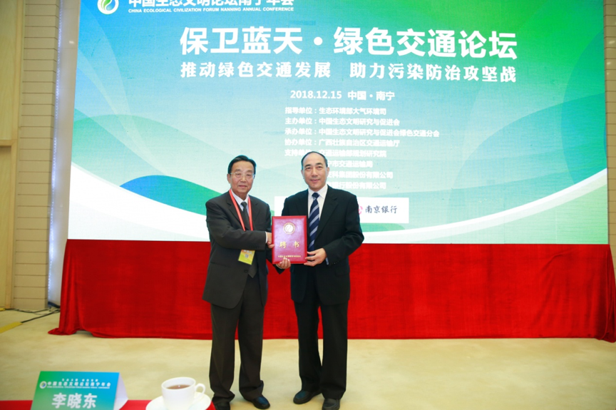 12月15日,中国生态文明论坛年会暨绿色交通分会揭牌仪式在广西壮族自治区南宁国际会展中心成功举办。中国生态文明研究与促进会副会长、陕西省人大常委会原副主任李晓东主持揭牌仪式,生态环境部大气环境司巡视员李培、广西壮族自治区交通运输厅副厅长韦勇球出席并致辞。李晓东、刘卫星、李庆瑞、李培共同为绿色交通分会揭牌,交通运输部政策研究室副主任张姝为,海南省交通运输厅党组成员、总工程师刘闯,fun88集团总裁李大鹏,南京银行股份有限公司相关领导,南宁市交通运输局党组书记、局长蔡友清,绿色交通分会副会长吴晓明、王文龙、顾兴宇,秘书长钱毅,以及出席本次揭牌仪式的近200名与会代表共同见证。