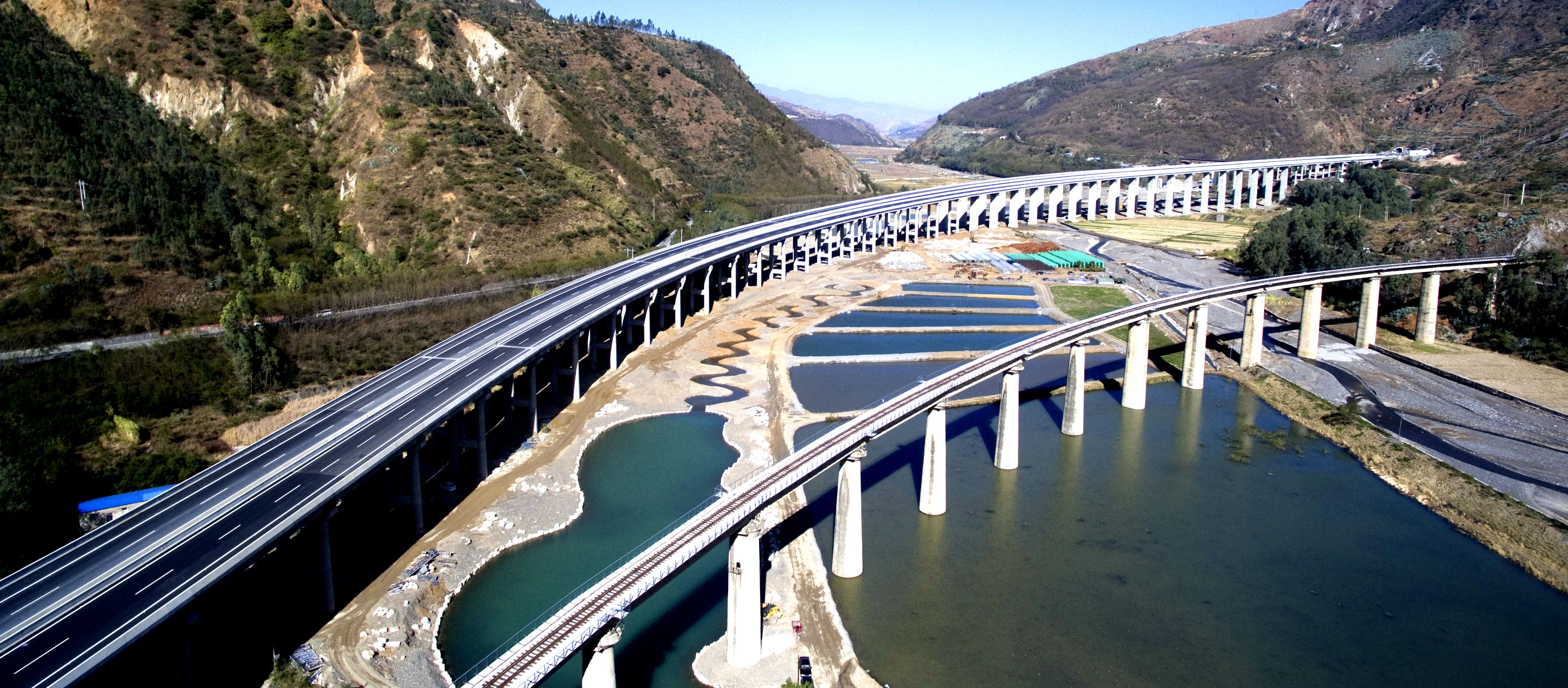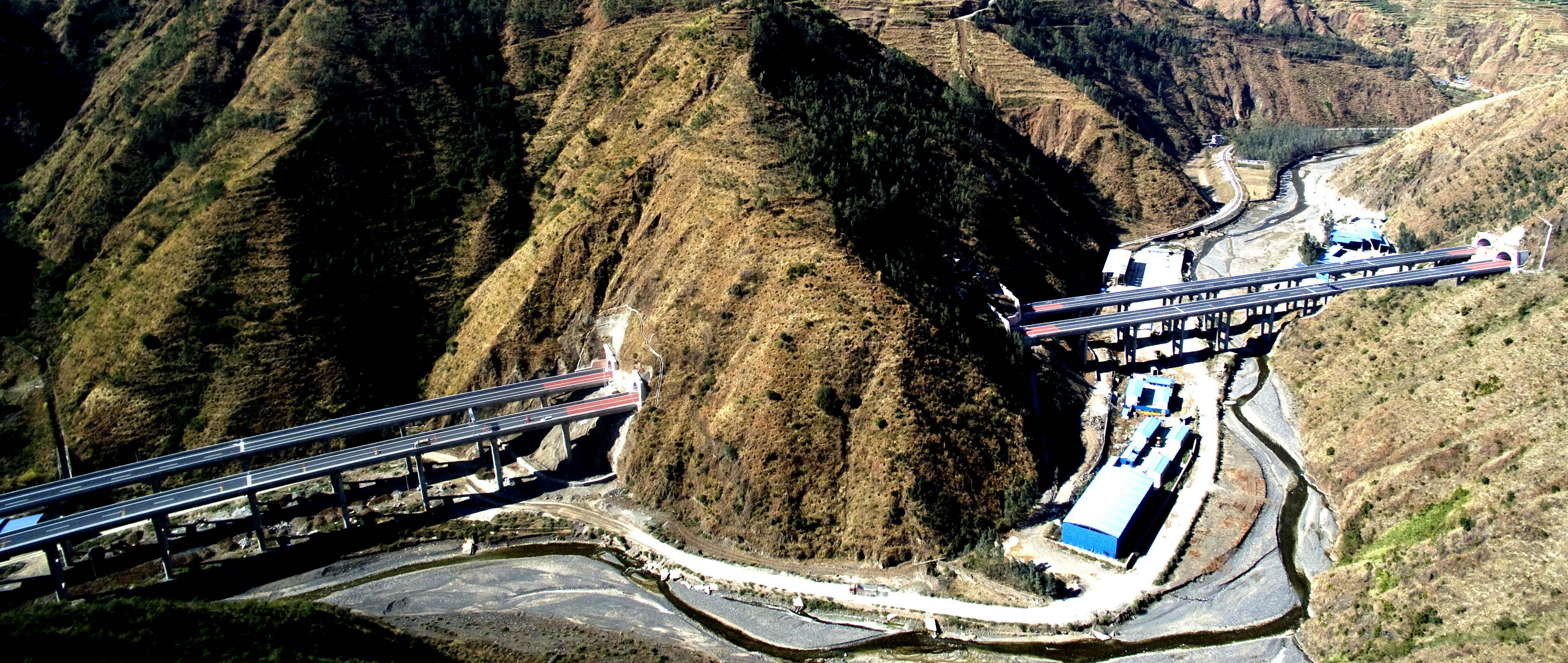 本项目与小江断裂带走向平行,地质条件极为复杂,滑坡、崩塌、泥石流等不良地质发育,地震烈度为Ⅸ度,地震加速度≥0.4g,地勘难以准确勘察,设计难度大。面对挑战,项目组迎难而上,邀请了国内知名专家和研究单位针对项目特点、难点问诊把脉,积极采用新技术、新材料、新工艺、新设备,在高烈度地震区边坡、桥梁、隧道、泥石流等方面开展了深入的研究,取得了一系列科研成果应用于工程实践。