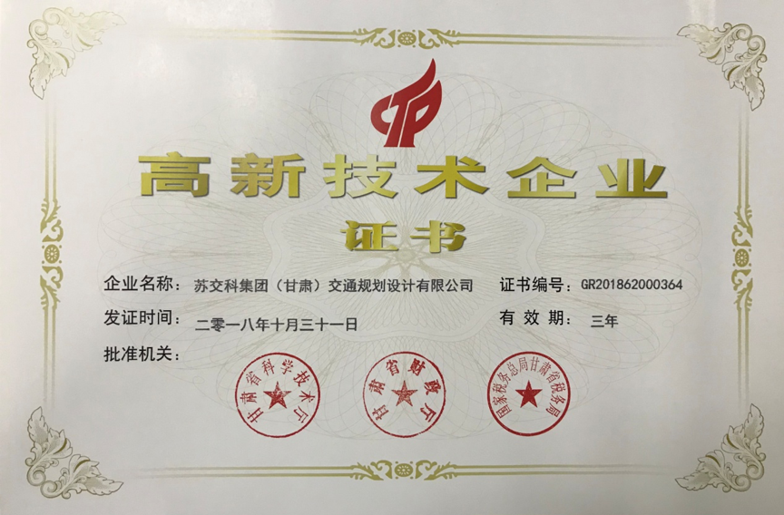 近日,fun88集团子公司交科甘肃顺利通过甘肃省高新技术企业认定,标志着交科甘肃在自主知识产权、研究开发的组织管理水平、科技成果转化能力、成长性指标等达行业领先水平。