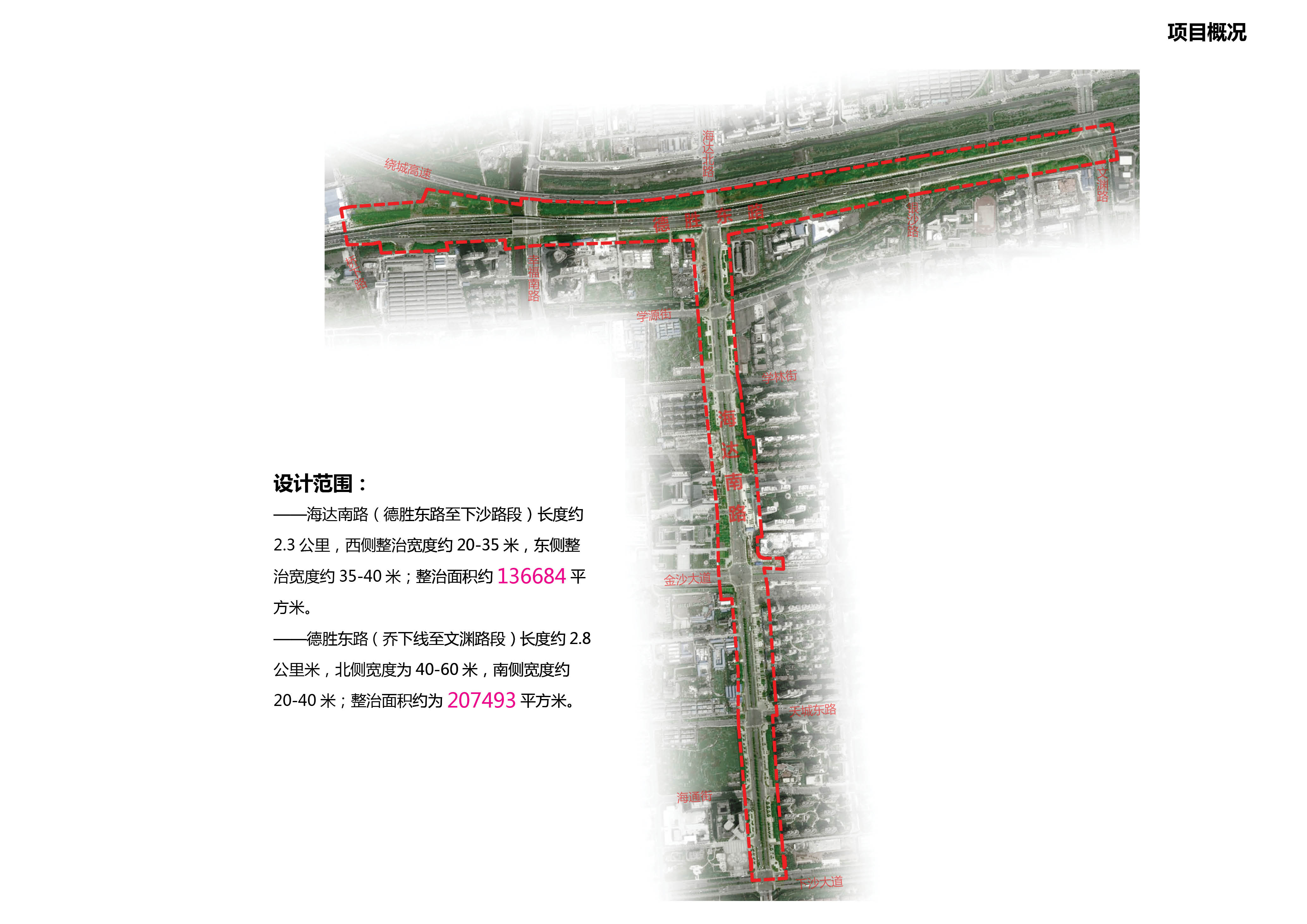 海达南路和德胜东路周边环境景观提升工程项目总长度约5090米,整治总面积约344177平方米,项目总投资10233.08万元,其中建安投资8234.9万元。项目主要包括人行道路面修复、道路绿化提升、主雕塑、小品及公共艺术小品等景观建设。