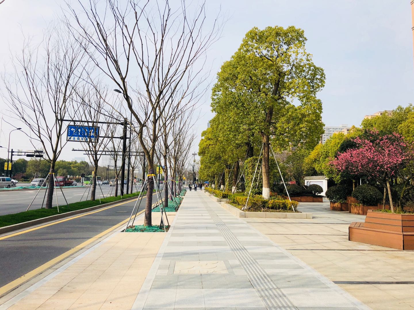 ▲海达南路样板段工程行道树施工完成