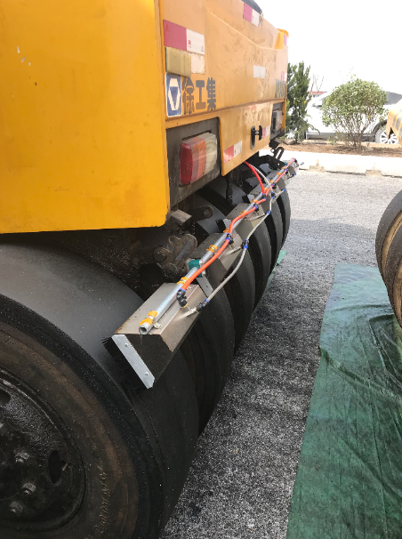 ▲ 胶轮压路机实现自动喷洒隔离剂功能
