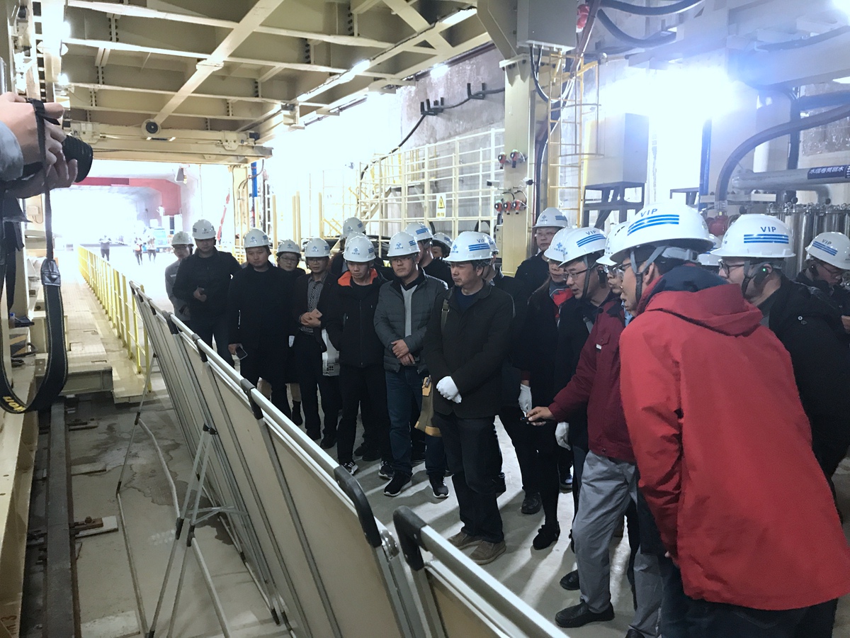 ▲ 15日下午,江苏省地下空间学会副理事长程光华带队参观考察南京市和燕路过江通道工程