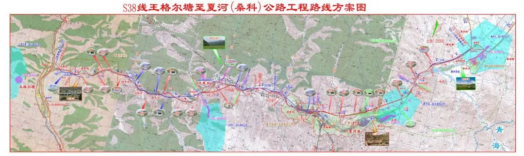 ▲ S38王格尔塘至夏河(桑科)公路工程路线方案图