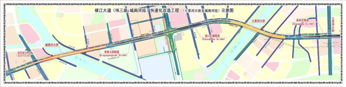 ▼ 横江大道(纬三路-城南河路段)快速化改造工程(七里河大街至城南河段)示意图