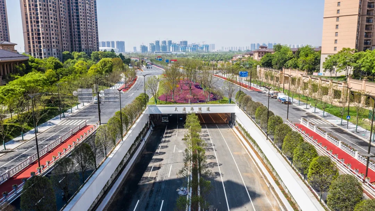 工程建设聚焦标准化,按照“先深后浅、到边到角”时序展开,集成施工采用地坪与隧道结合方式,设置长隧两处,节点隧一处,隧道总长4285米。全线共设置上下出入口匝道6处。其中中央商务区内穿越地下空间隧道路段,与地下空间、地下环路、地铁、综合管廊等协同设计。