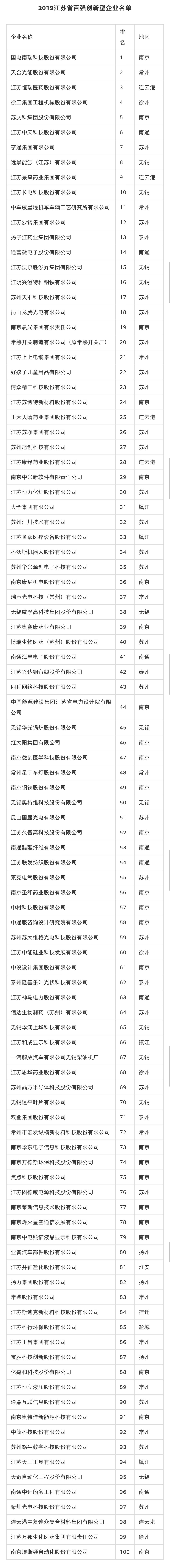 近日,江苏省科技发展战略研究院发布“2019江苏省百强创新型企业”榜单,集团成功上榜并位列第5位。