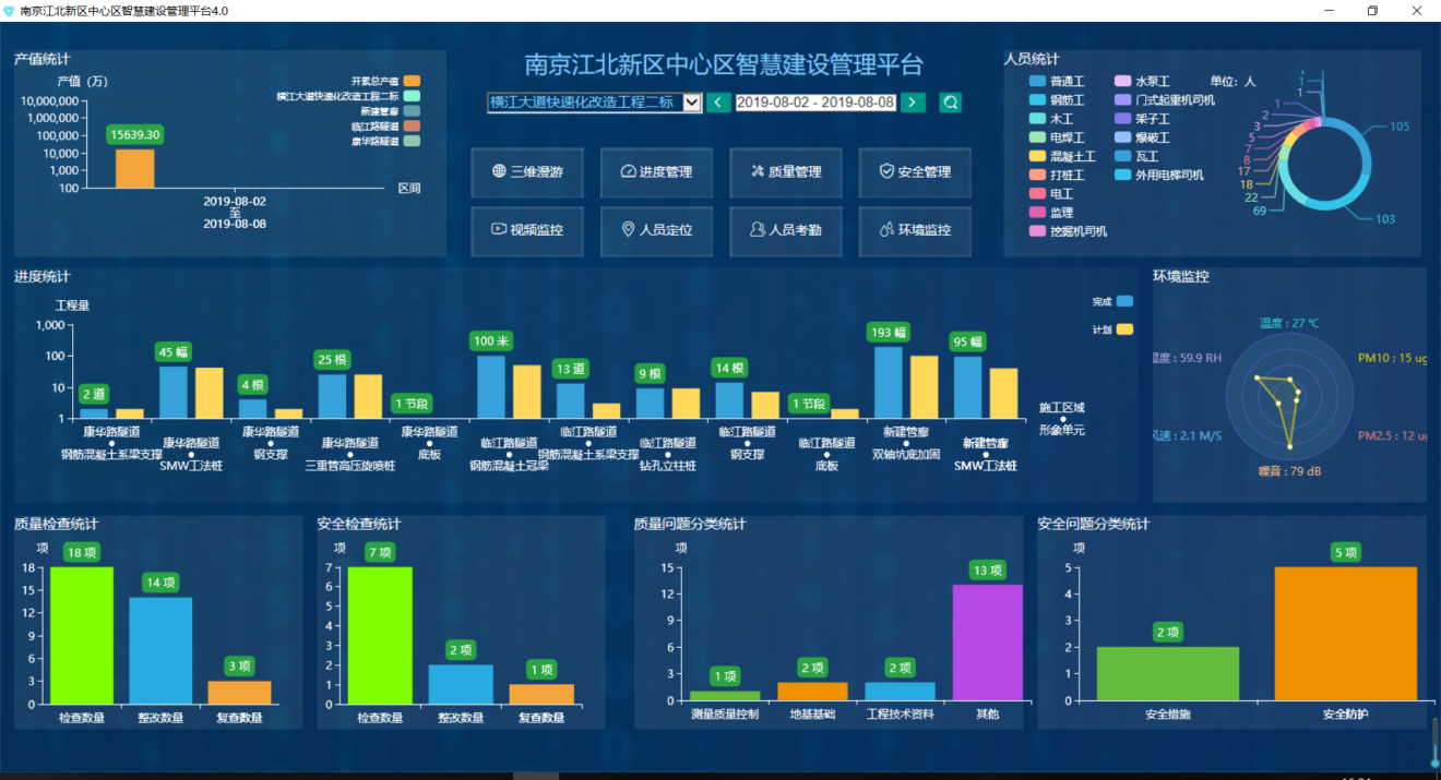 项目基于GIS、BIM、AI、物联网、大数据等新技术搭建智慧建设平台,集成工程项目各阶段、各关键指标、各组织、各专业业务信息,开发各类子系统,确保信息准确性、实时性、有效性和标准化,实现对项目进度、质量、安全等全面管控。