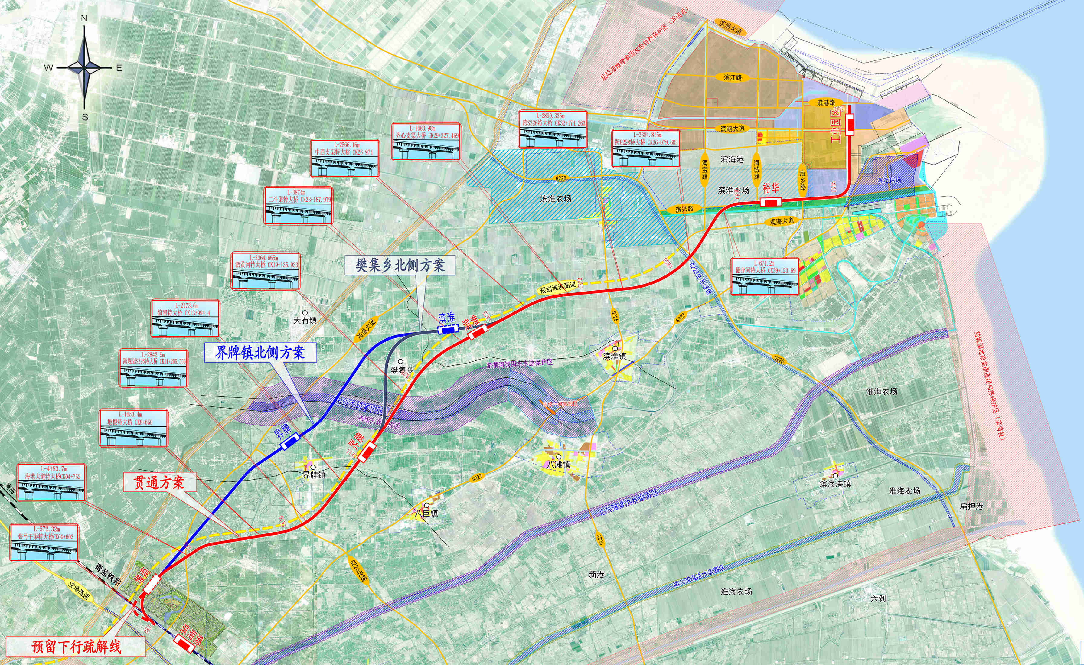 盐城港疏港铁路滨海港支线是国家发展改革委等五部门联合印发的《关于加快推进铁路专用线建设的指导意见》(发改基础〔2019〕1445号)中明确须在2019-2020年先行实施的铁路专用线重点项目之一,是支撑盐城港滨海港区建设的重要集疏运基础设施。滨海港铁路支线为单线电气化铁路,位于江苏省盐城市滨海县境内,起于青盐铁路滨海港站,终于滨海港工业园区,新建线路全长50.839km,其中桥梁长度约33.25km,占比65.4%。