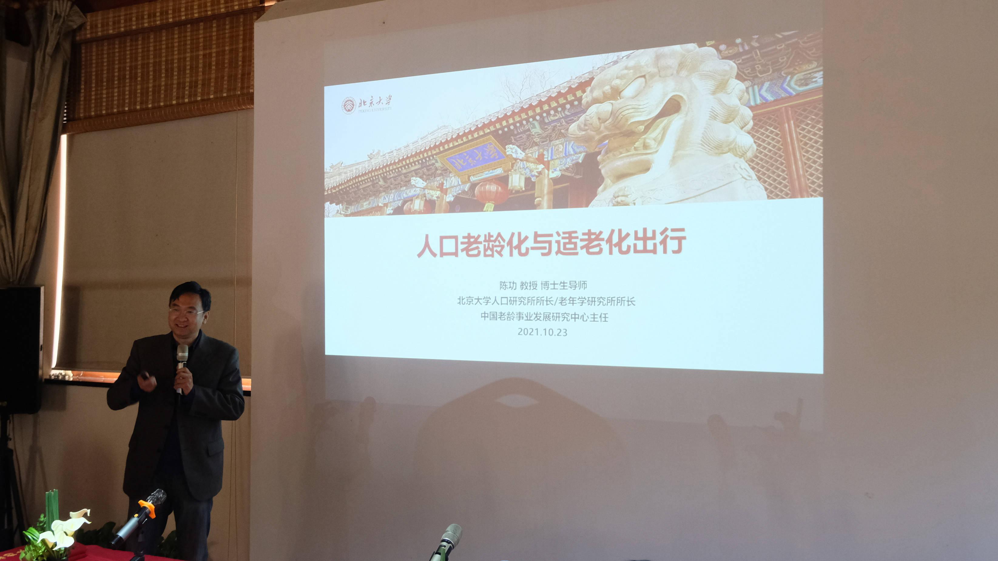 ▲ 北京大学人口研究所所长/老年学研究所所长、中国老龄事业发展研究中心主任、博士生导师陈功教授作《人口老龄化与适老化出行》主题演讲