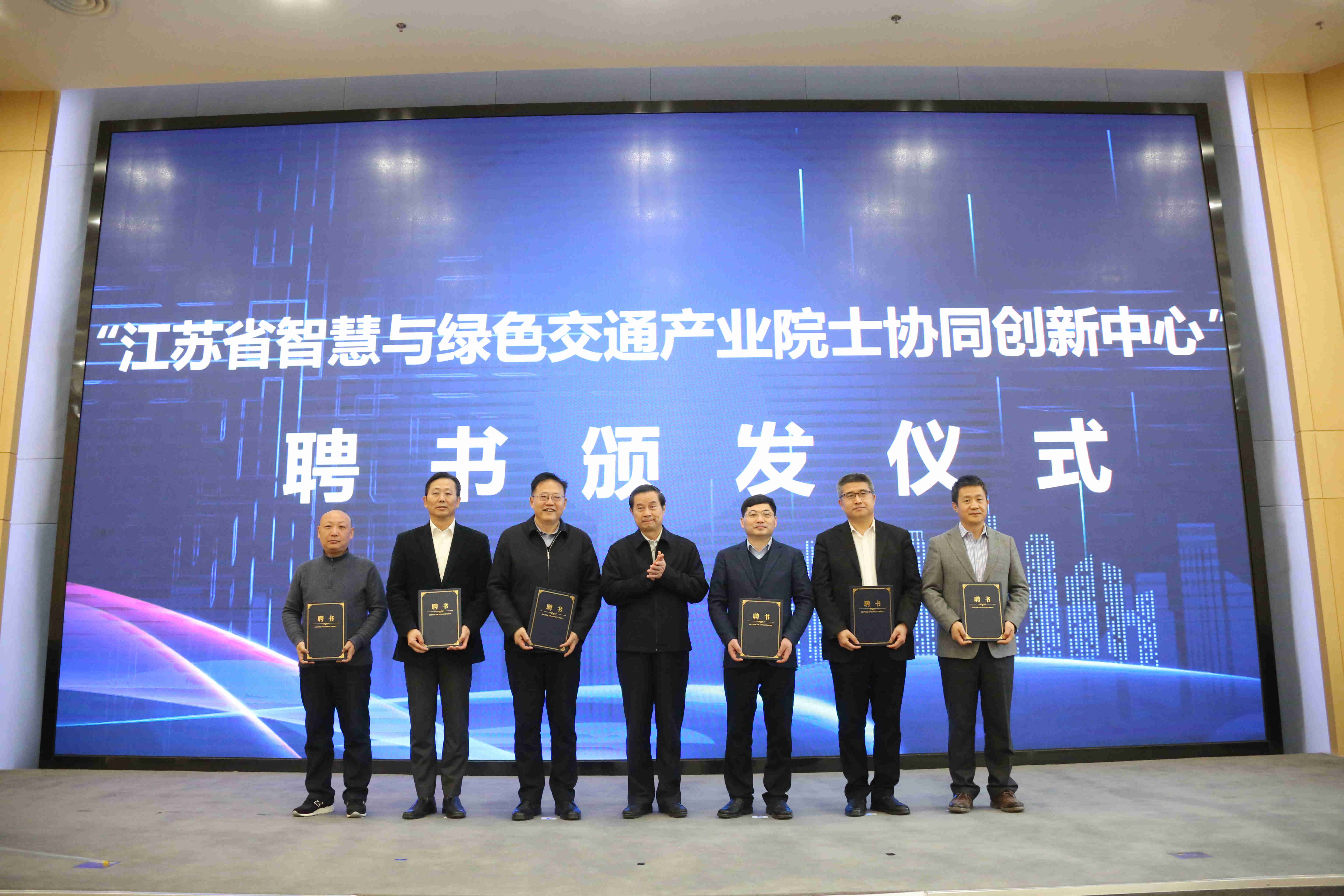 ▲ 江苏省智慧与绿色交通产业院士协同创新中心聘书颁发仪式