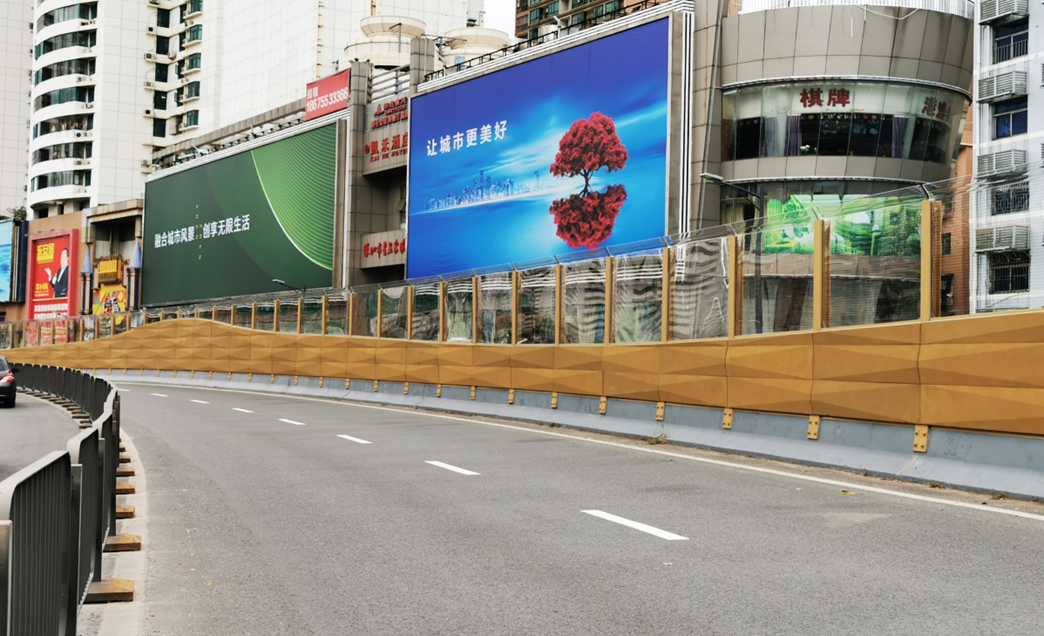微孔岩自清洁声屏障是江苏省综合交通运输学会“智慧与绿色交通产业院士协同创新中心”的优先项目。微孔吸隔声板利用硅基聚合原理、采用德国特殊工艺进行制作,通过硅基聚合法使聚合物与天然砂砾接触后发生反应,形成聚合岩。因聚合过程中砂砾之间存在缝隙,故可形成良好的多孔性,从而使产品具有吸声和隔声双重功能。与同类型产品相比,综合造价相当,吸隔声效果显著提升,降噪系数高达0.65、降噪达到35以上,且能够针对低中高全频段进行降噪。同时,该材料拥有仿荷叶技术,使屏体在使用过程中不受污染、长效常新,且自清洁能力不会随时间的推移而衰减。宁通公司在微孔岩吸隔声领域拥有完善的材料技术、施工工艺及质量控制体系,目前该产品已在广州、北京、西安、浙江等地进行了实际应用,表观良好、吸隔声效果优异,具有很好的市场推广价值。