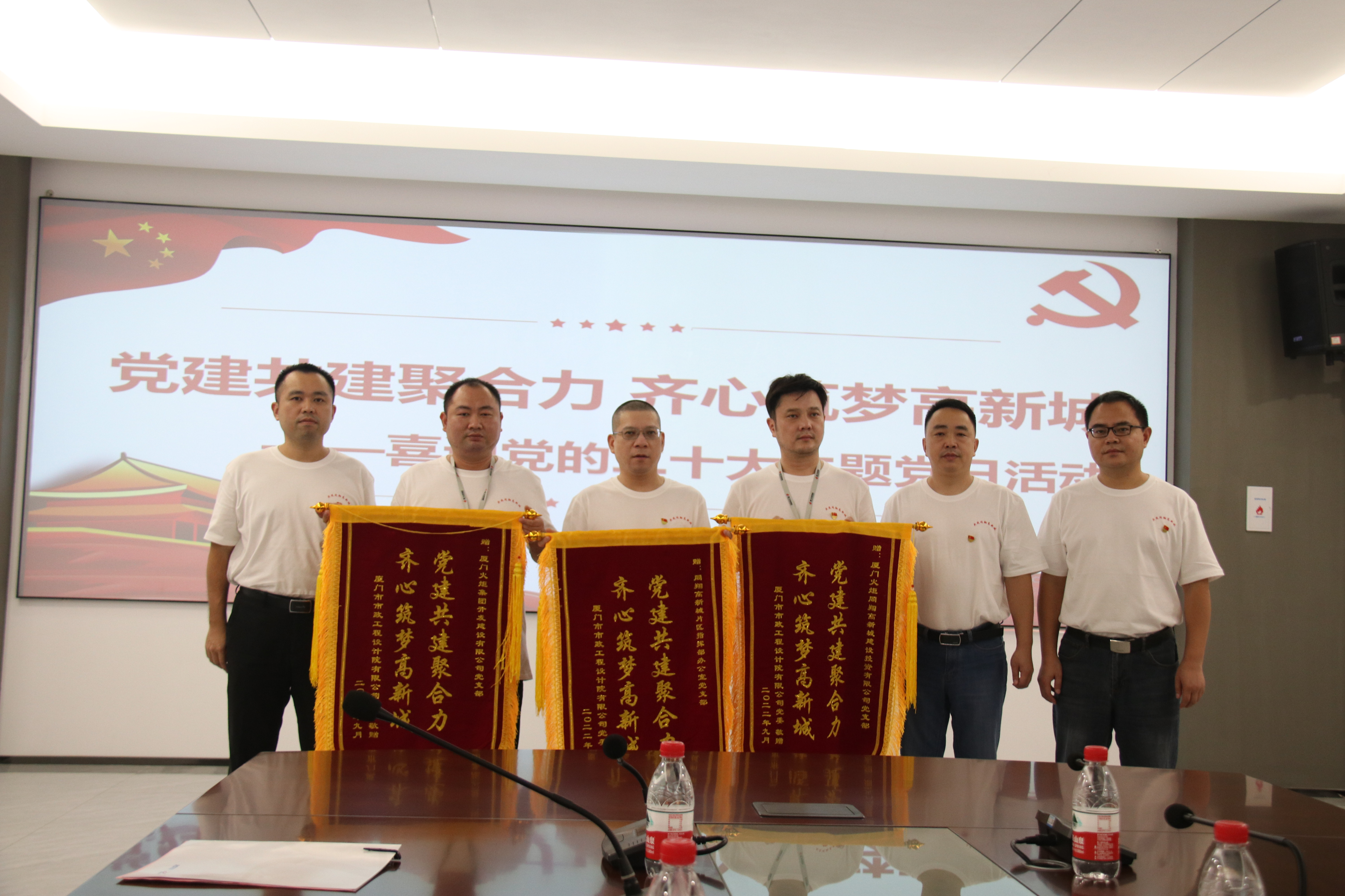 厦门市政院党委分别向同翔高新城指挥部党支部、火炬同翔建投公司党支部、火炬开发公司党支部赠送锦旗。
