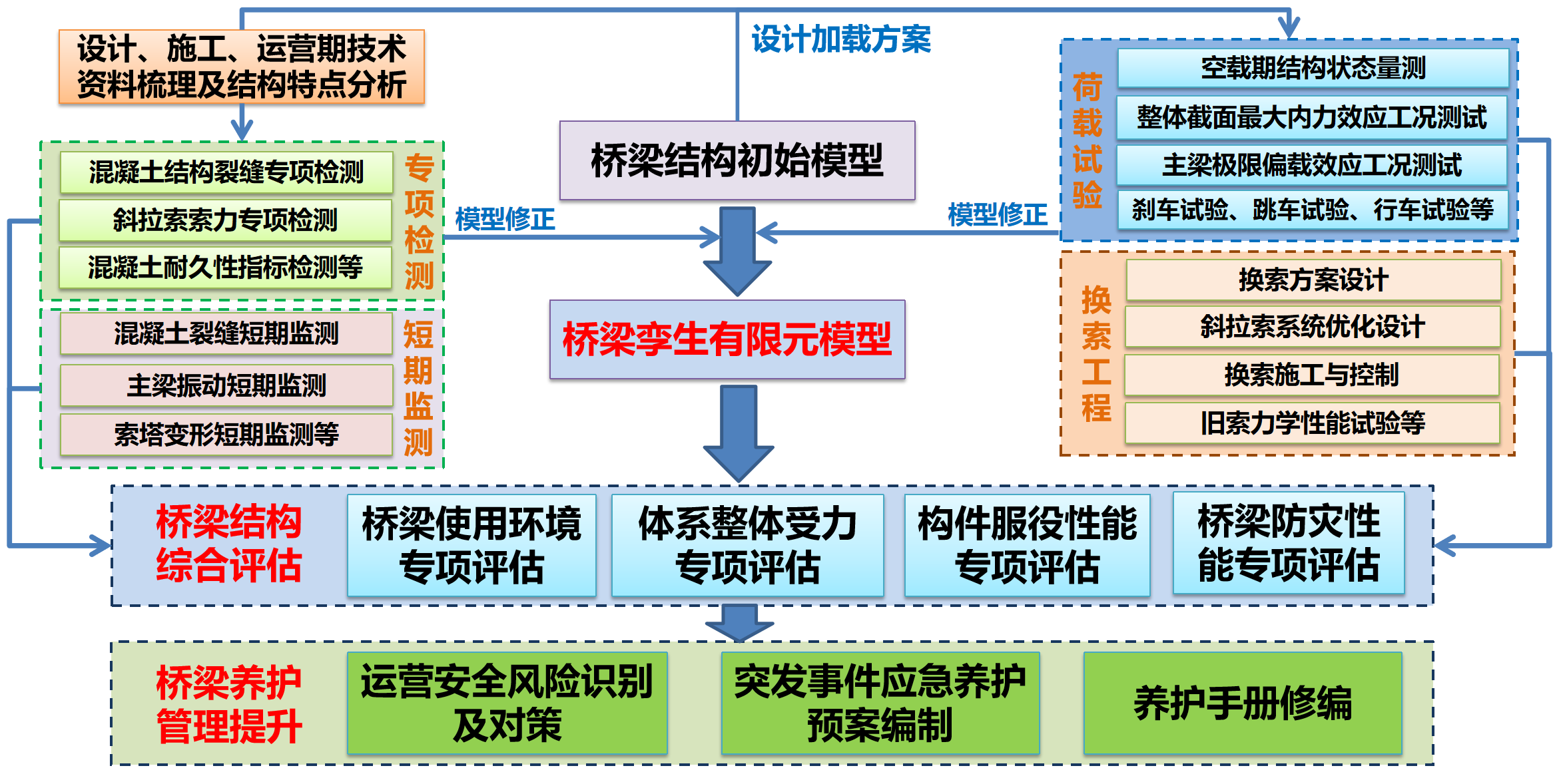 本项目拟通过外观检测、关键构件专项检测、专项监测、静动载试验、健康监测数据挖掘、数值仿真分析等手段对戚墅堰互通主线斜拉桥开展综合评估,将为该桥养护管理和改扩建工程提供重要技术支撑。