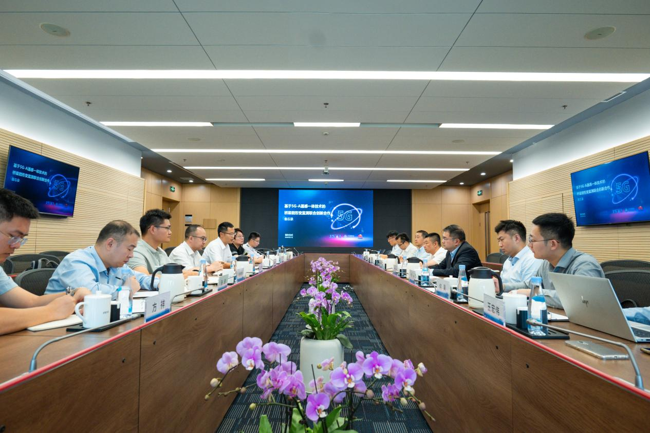 7月17日,中国移动通信集团江苏有限公司(以下简称“中国移动江苏公司”)副总经理史昕晖、华为技术有限公司(以下简称“华为公司”)中国区5G-A产业发展部部长杜叶青一行莅临集团参观交流。集团副总裁(桥梁业务)徐剑及交通科学研究院结构监测中心、江苏科运智慧交通科技有限公司相关负责人参与座谈。