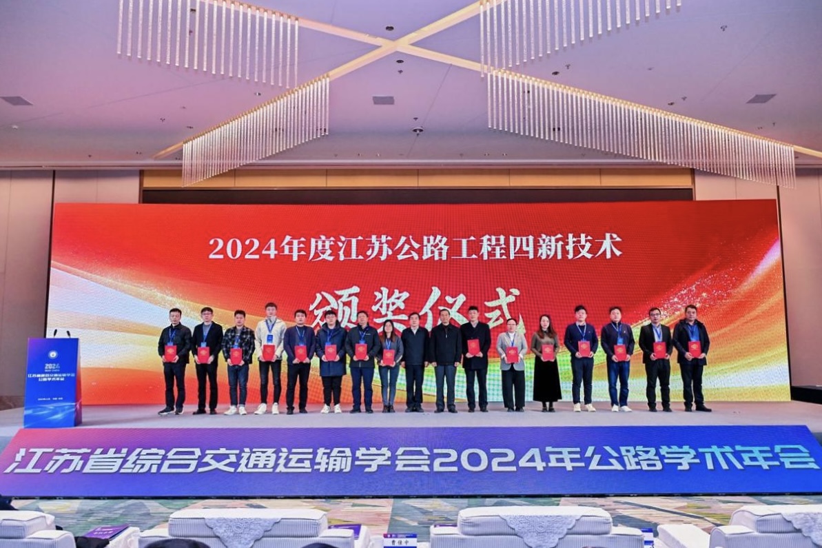 会议期间,举行了“2024年度江苏公路工程四新技术”颁奖仪式,共有15项技术脱颖而出,荣获殊荣。其中,fun88集团参与的5项技术成功入选,分别为“长效型低噪音沥青路面技术”、“高性能软土固化材料与技术”、“基于效益最佳的道路长周期养护智能决策技术”、“固废钢渣路面铺装技术”,“沥青混合料配合比智能设计方法及系统”,展现了集团在公路工程技术创新方面的卓越实力。